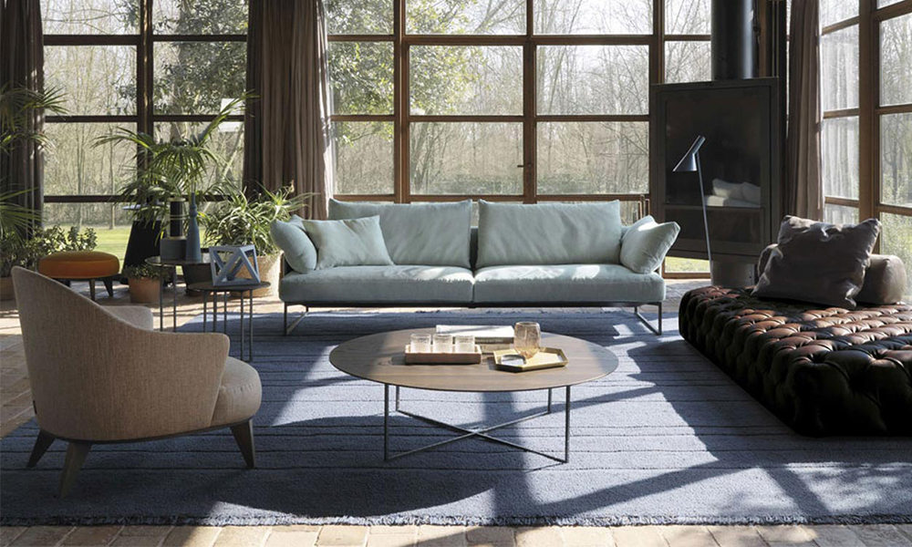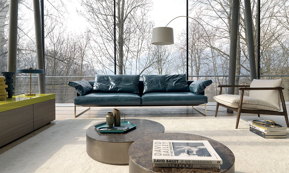 Arlon es un sofá de tres plazas tapizado en piel con patas de metal. Diseñado por Matteo Thun, se trata de una familia de muebles flexibles y versátiles.