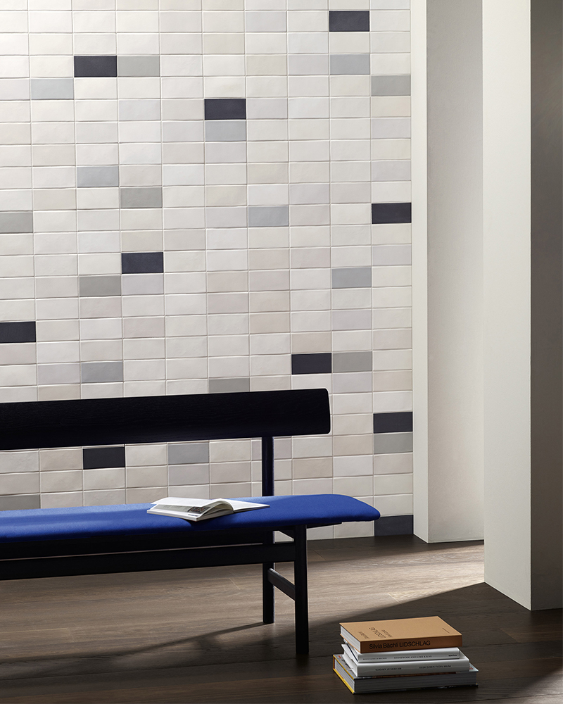 Lane es una colección de azulejos rectangulares de porcelana vidriada, tiene un único tamaño de 160 por 79 mm y está disponible en cinco paletas de colores diferentes que van desde los blancos grisáceos hasta los rojos terracota y morados berenjena.