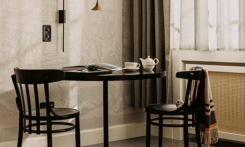 Bajo el nombre Volkshaus Basel Hotel, que combina un estilo de la década de los 20 con un diseño moderno dedicado a los amantes del detalle, el recinto alberga 25 habitaciones cuyo mobiliario −sencillo y en su mayoría de madera− combina con su ricura en texturas, los suelos de terrazo y tejidos.